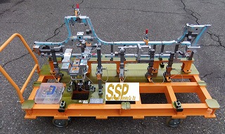 SIDE PANELにROOFを溶接する際に位置決め・固定をする為の治具です。
